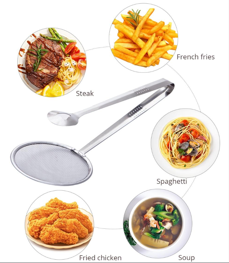 2-in-1 Oil-Frying Filter Clip – Kitchen Food Strainer Tongs for Fried Food – Stainless Steel