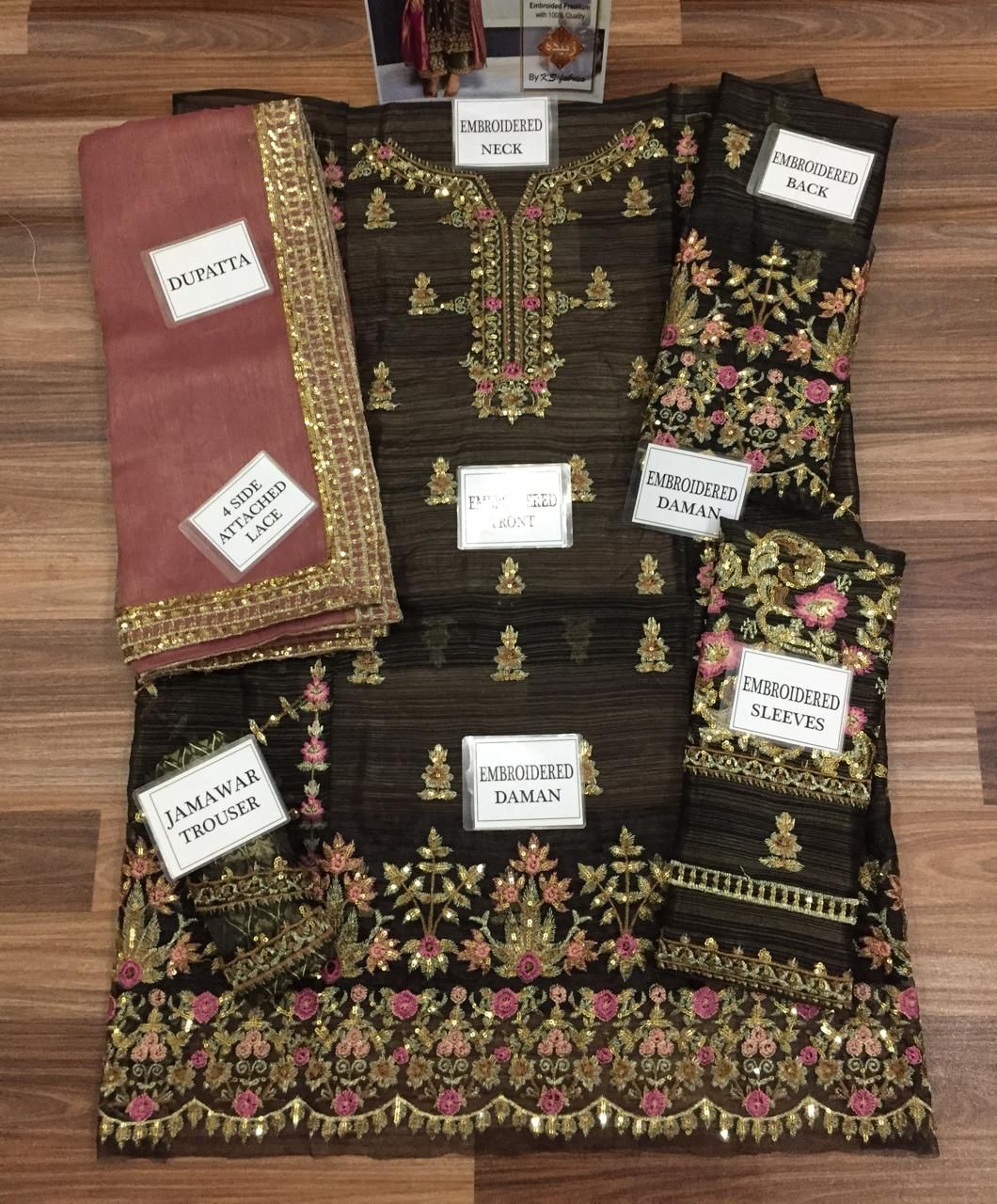 *Fully Zari & Sequence Embroidered Front & Embroidered Gala*