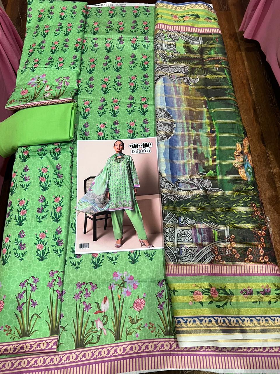 Digital printed lawn with diamond printed duppata
