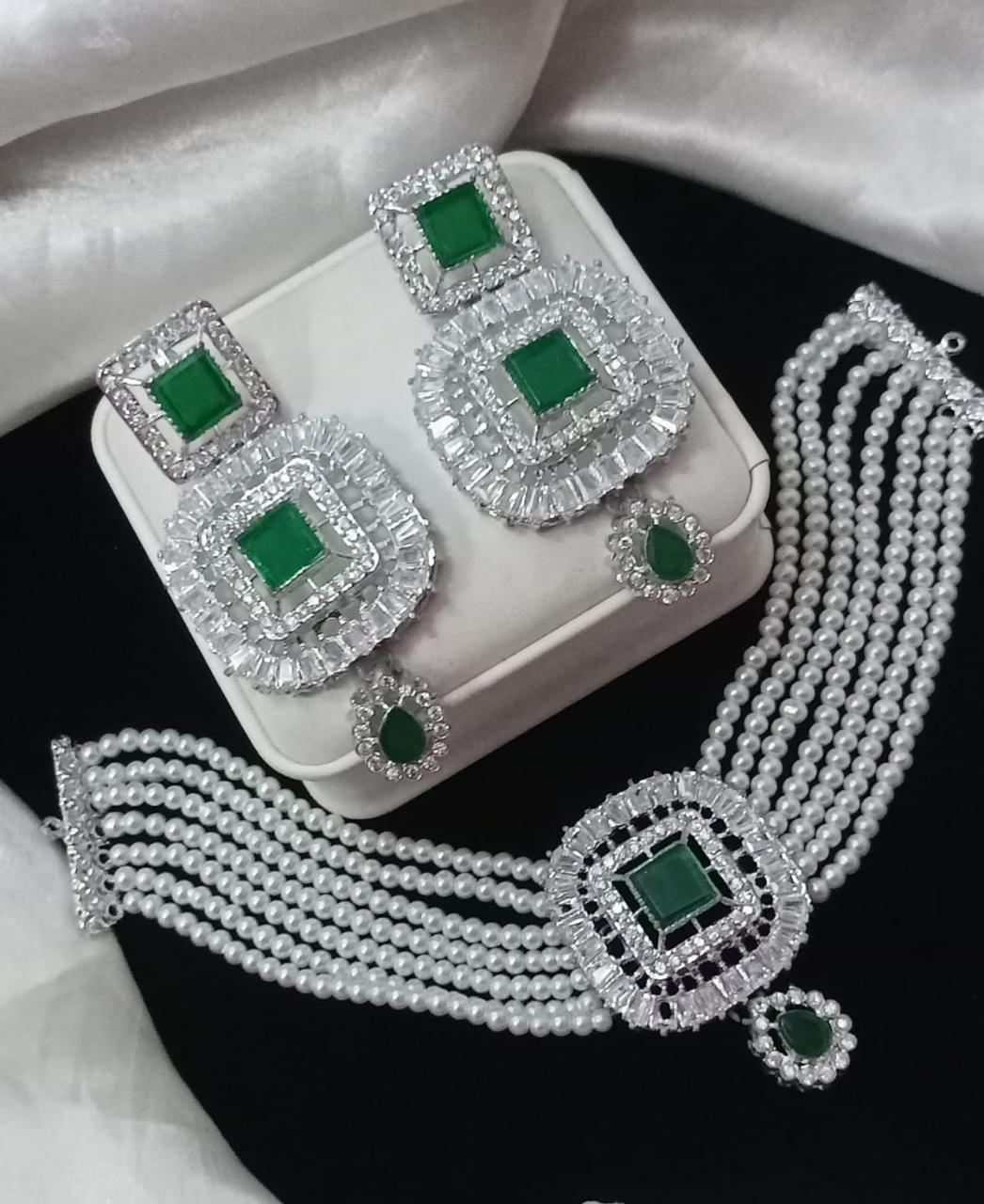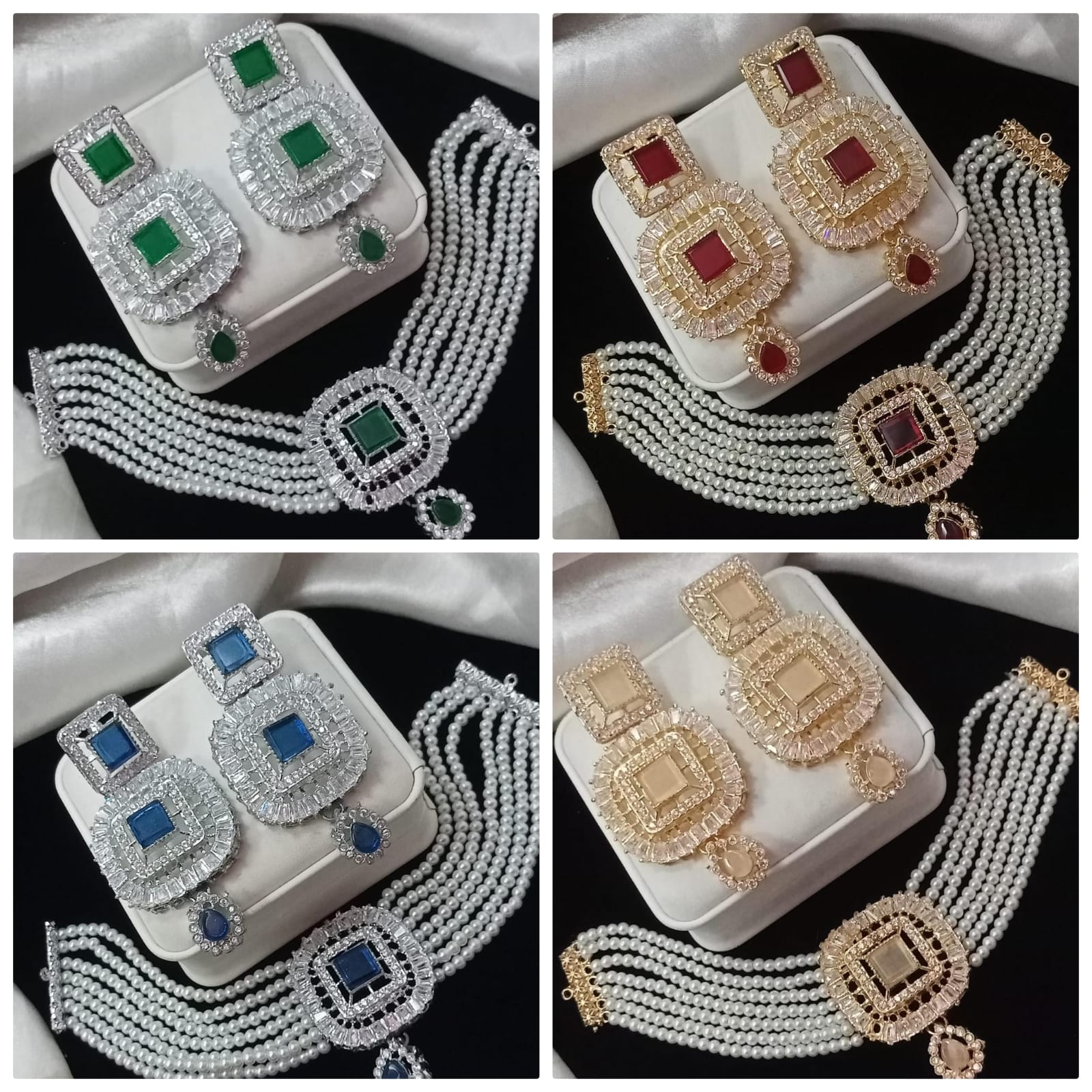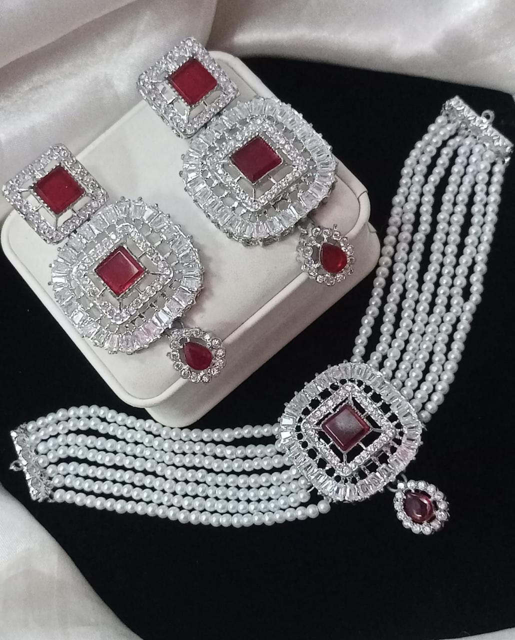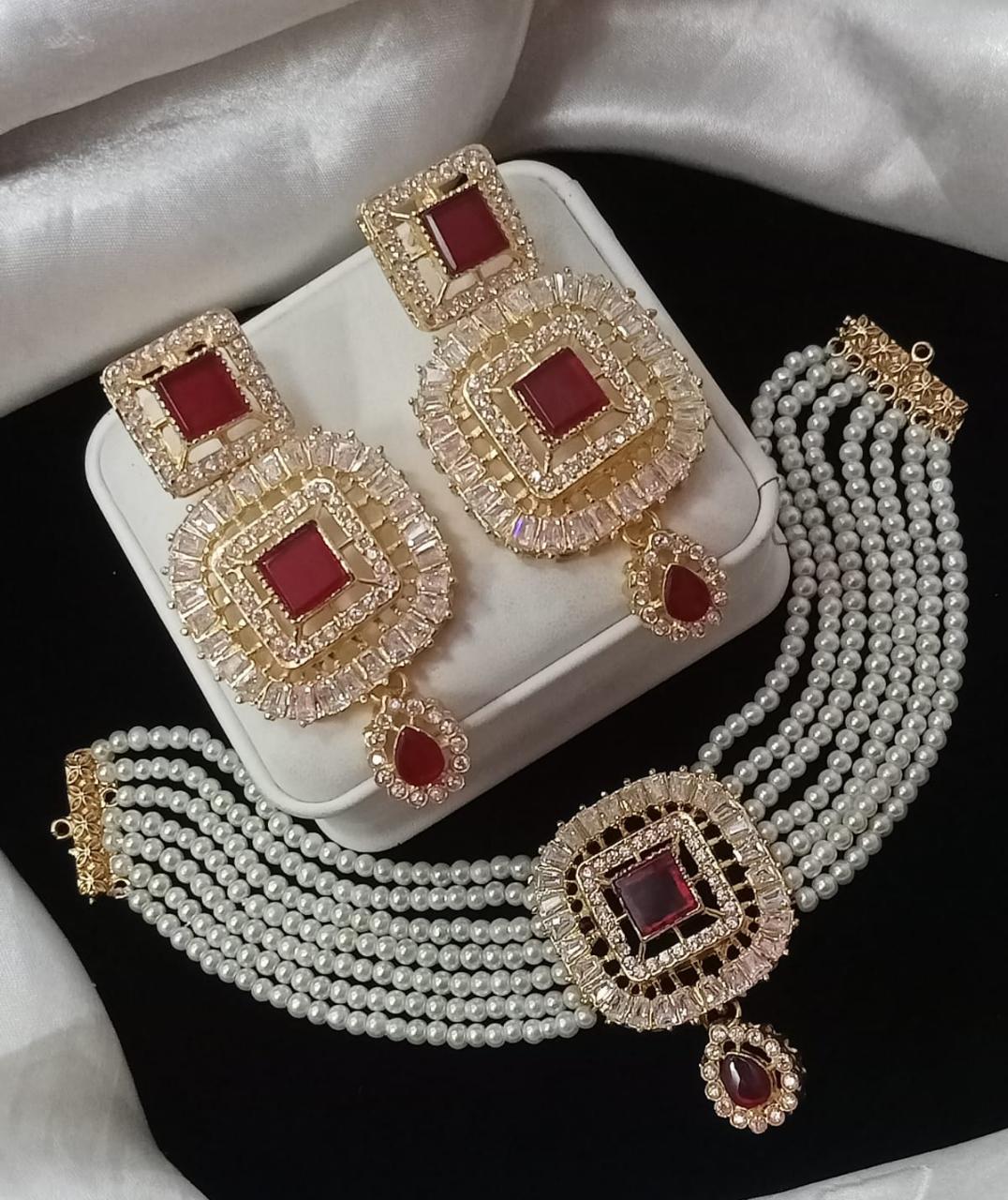 HIGH QUALITY ZIRCON CHOKAR SET With Red Jewelry Box With Gift Bag
