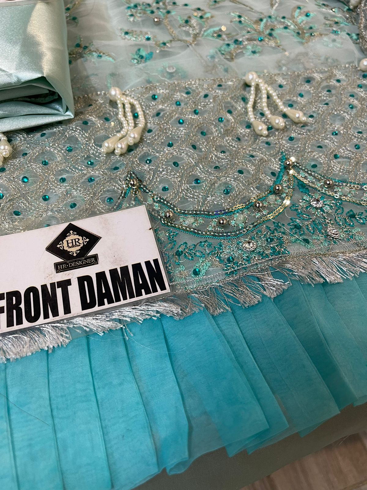 Front Full Heavy sequins Embroidered work with Hand Work With Daman Embroidered Patch