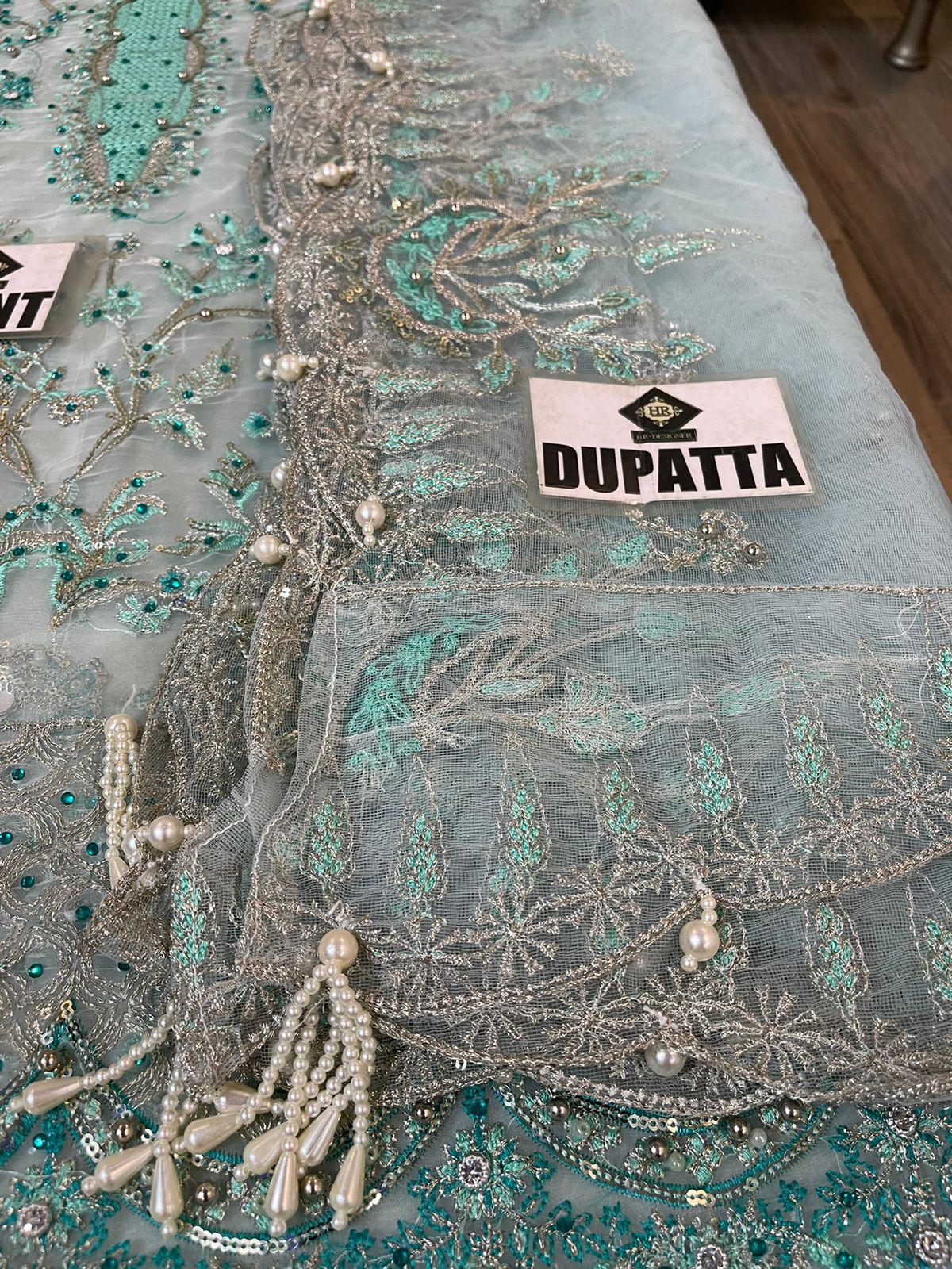 Dupatta Net Full Embroidered work with 4 side applique work and tussels attached