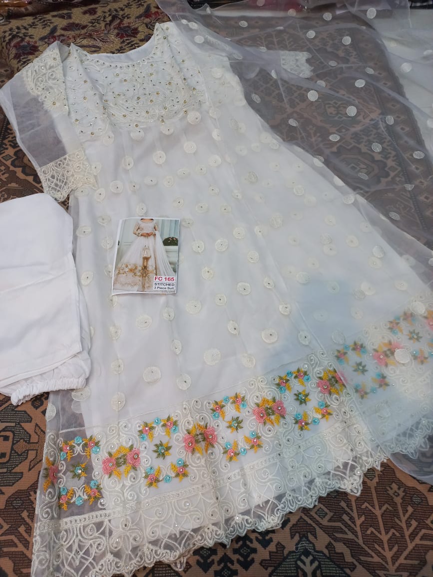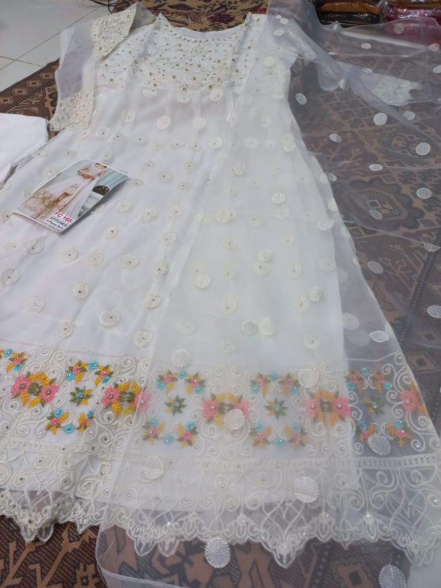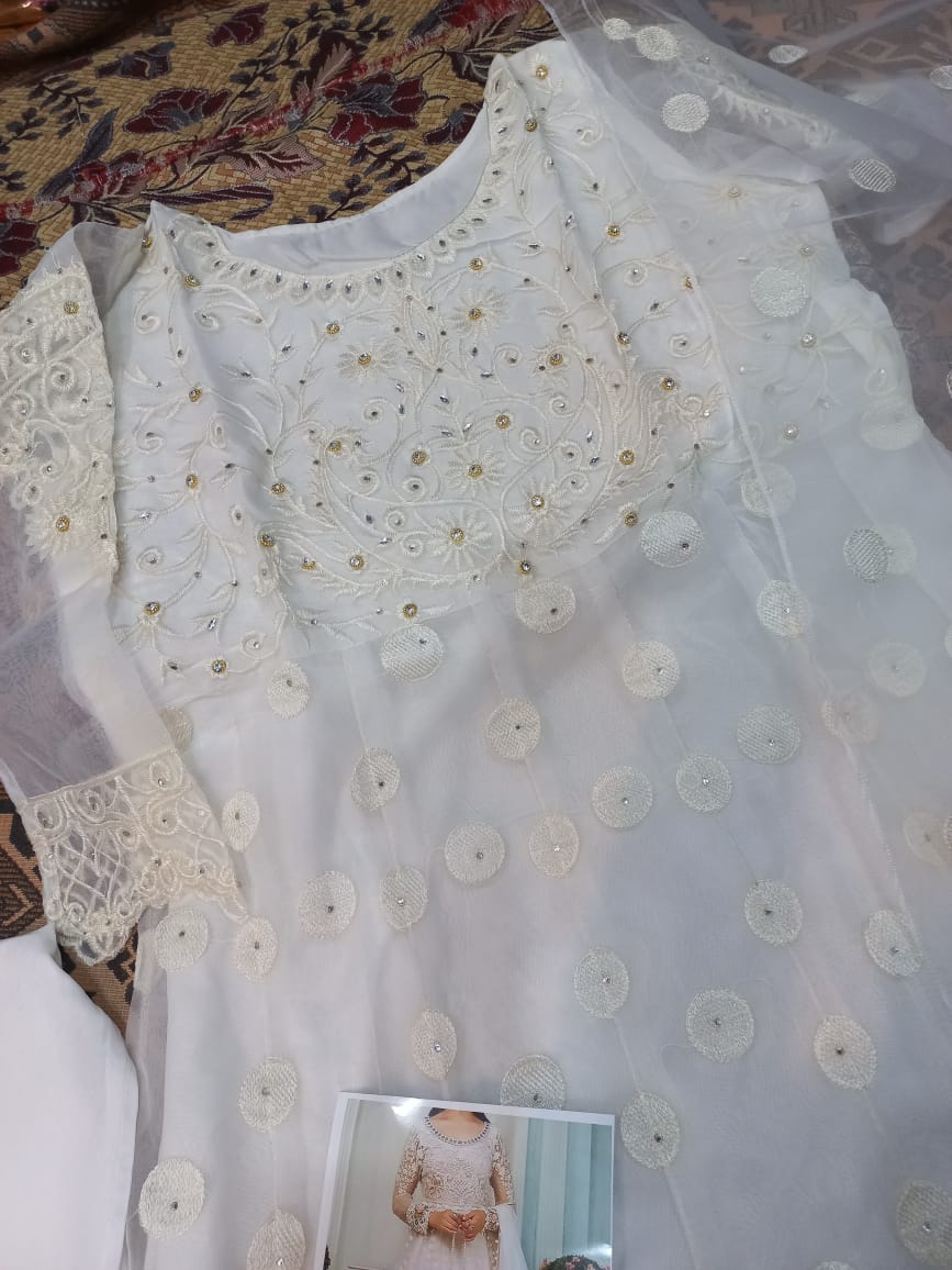 Multi Embroidery Daman Cut Work with Handwork on Body with Embroidered Dupatta 3PCs Maxi