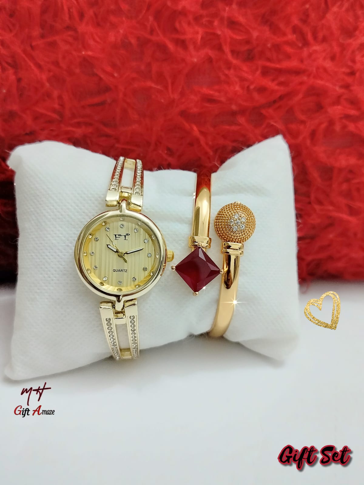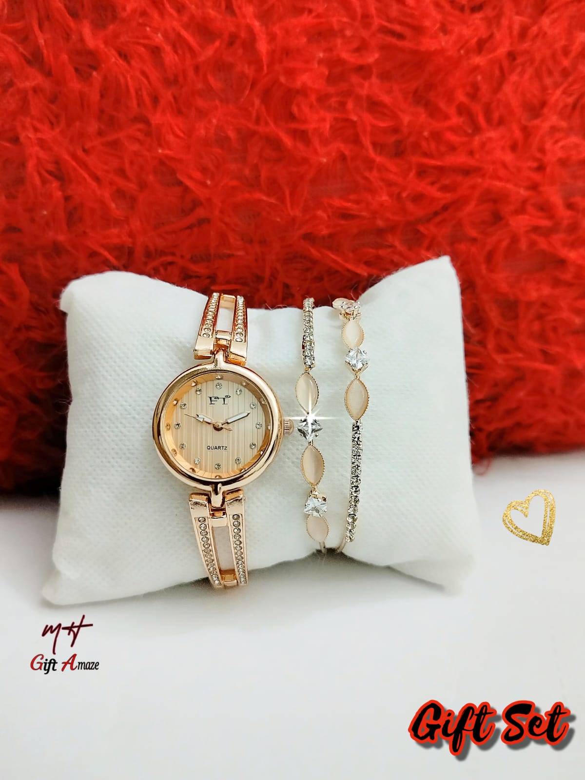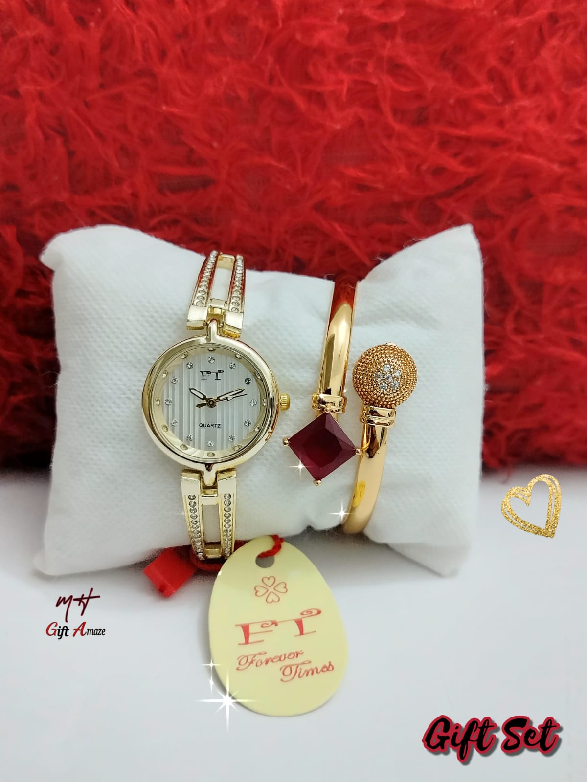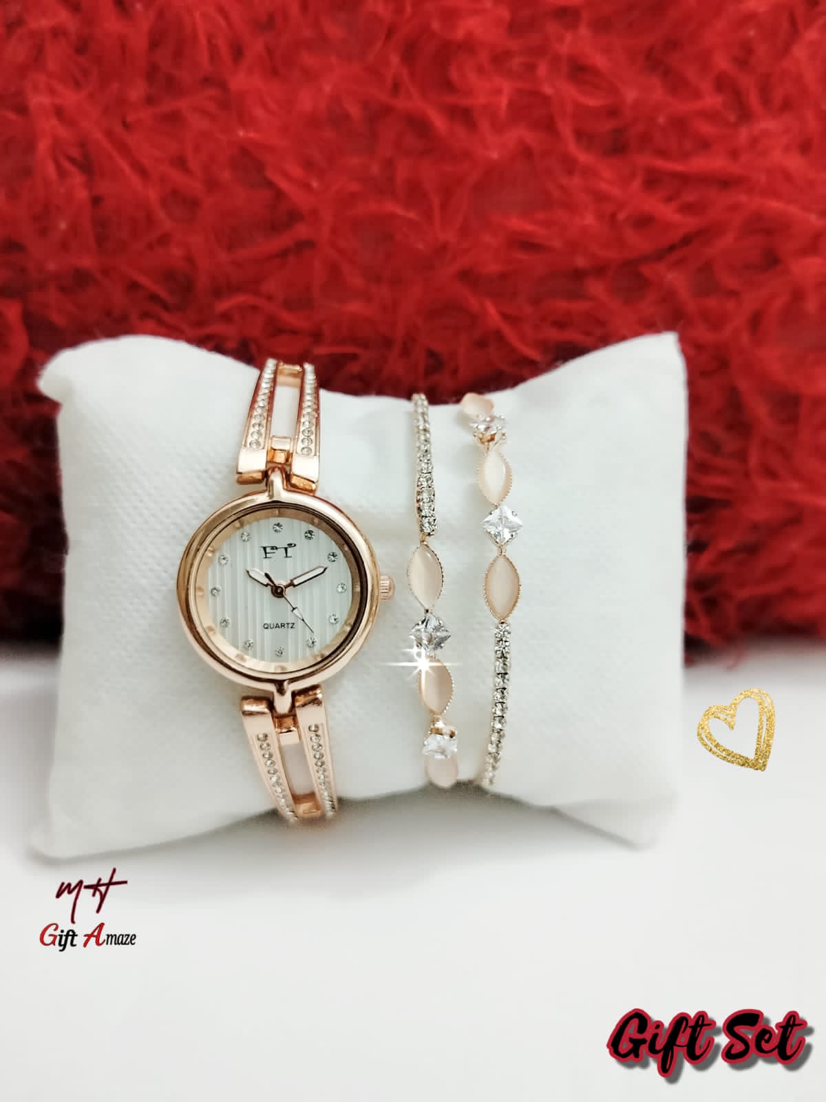 New Model FT Ladies Jewellery Watch + Fancy Bangle + High Quality Gift Box