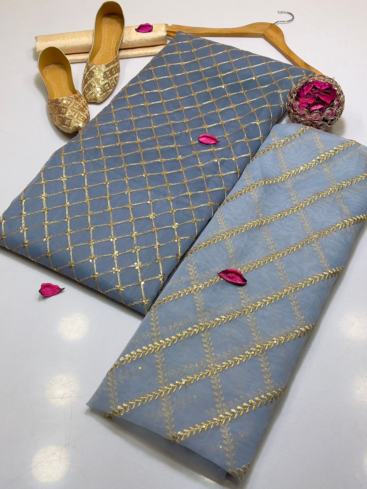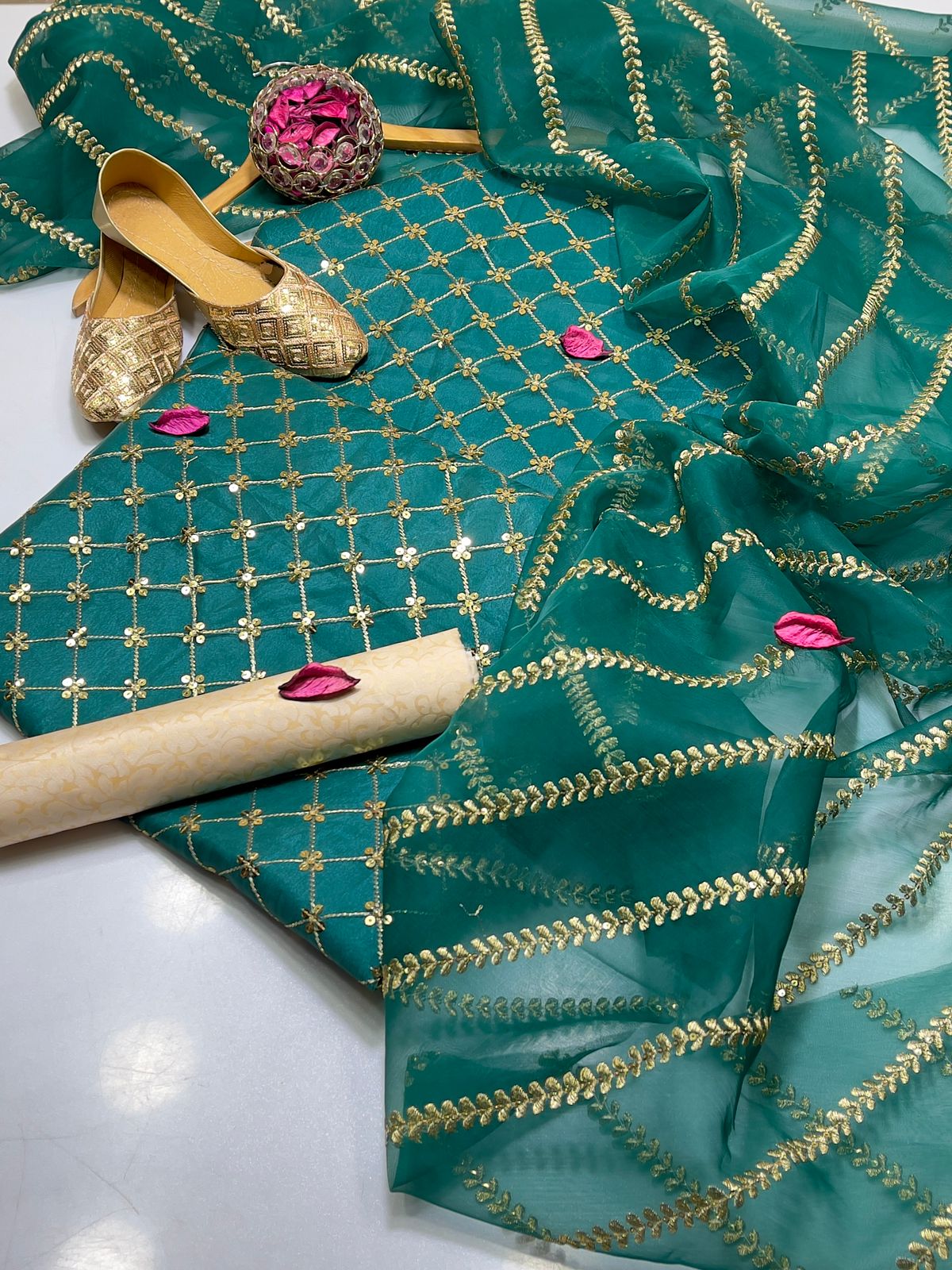 – Organza aari line sequence work dupatta