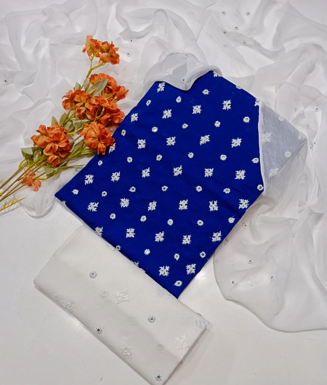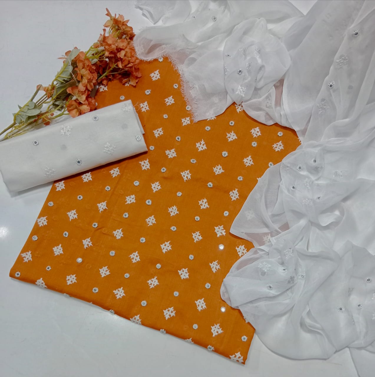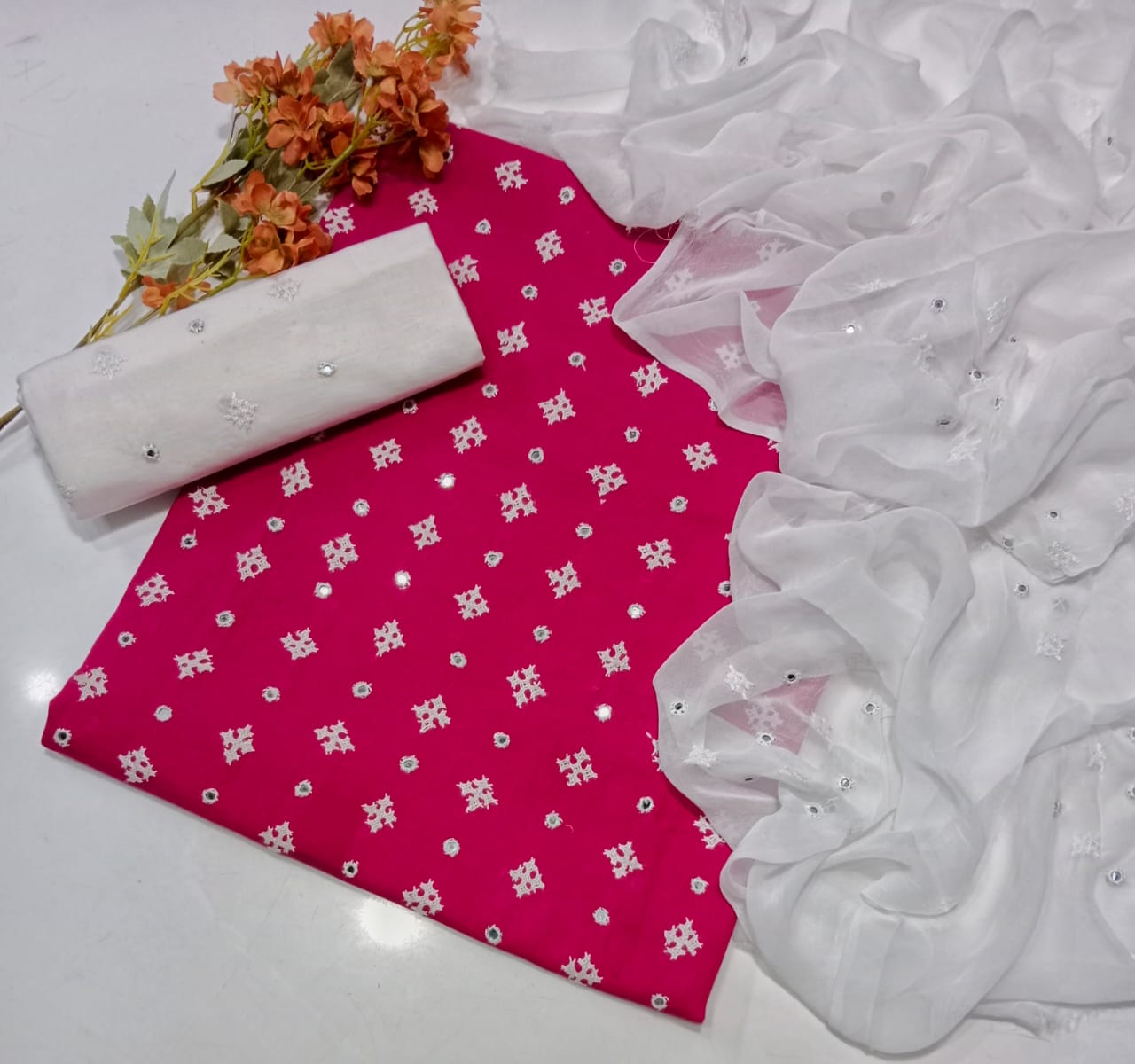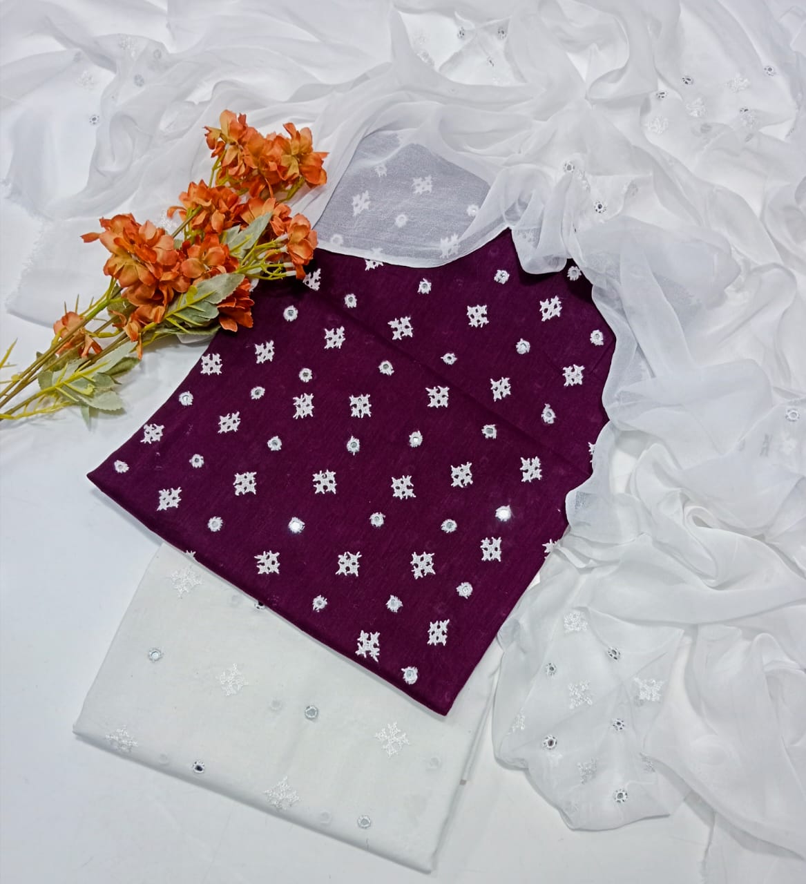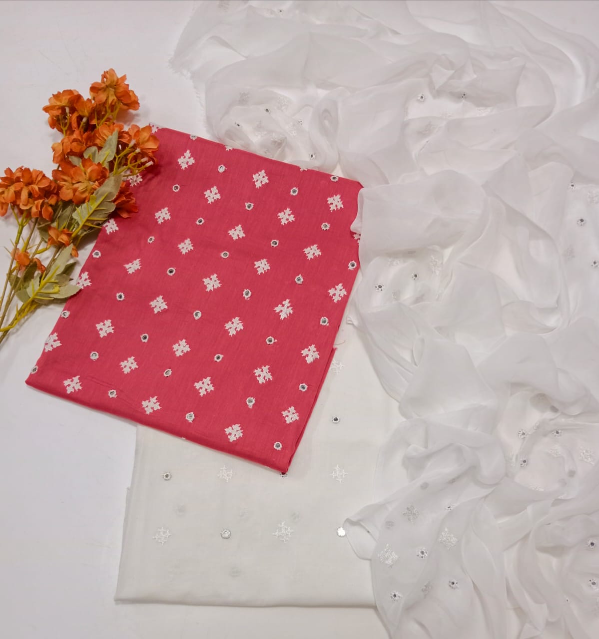 Trouser Cotton Embroidery Dupatta chiffon Embroidery