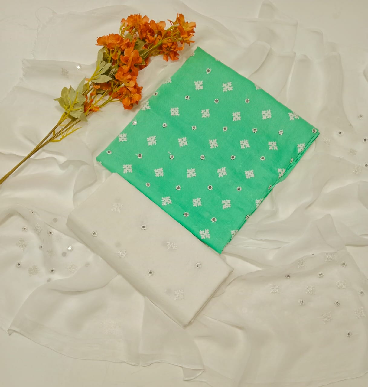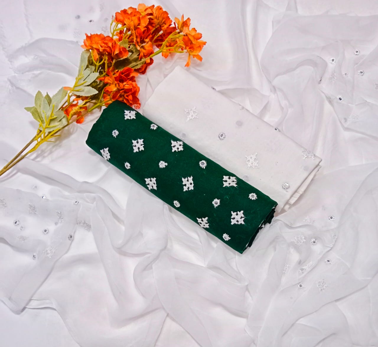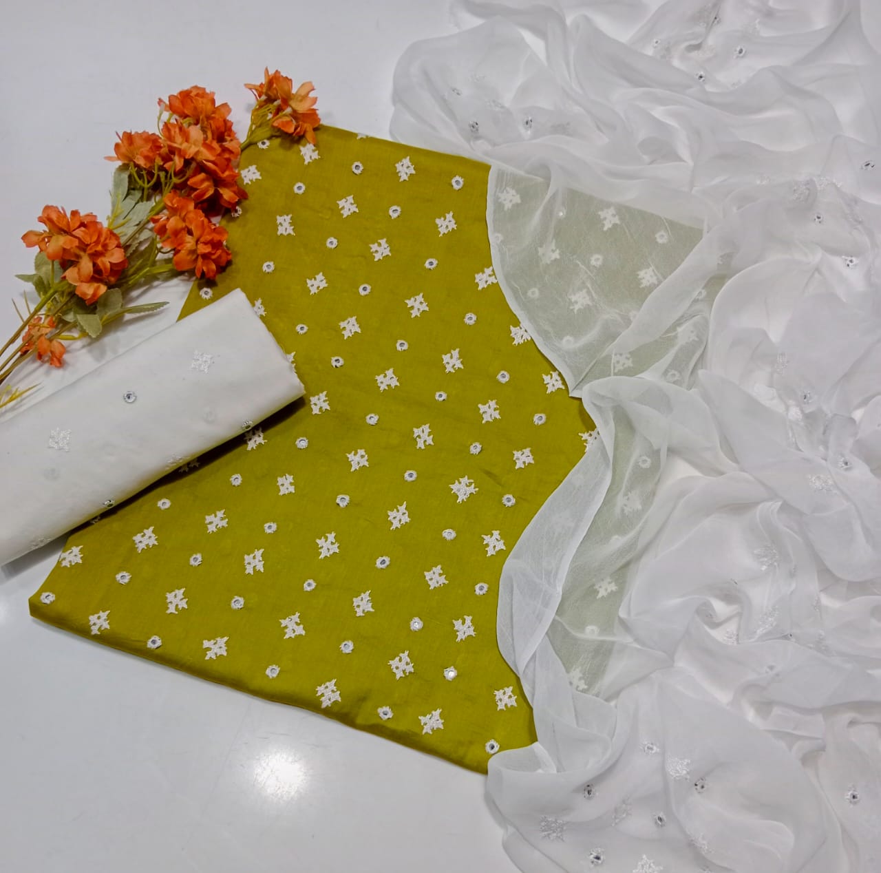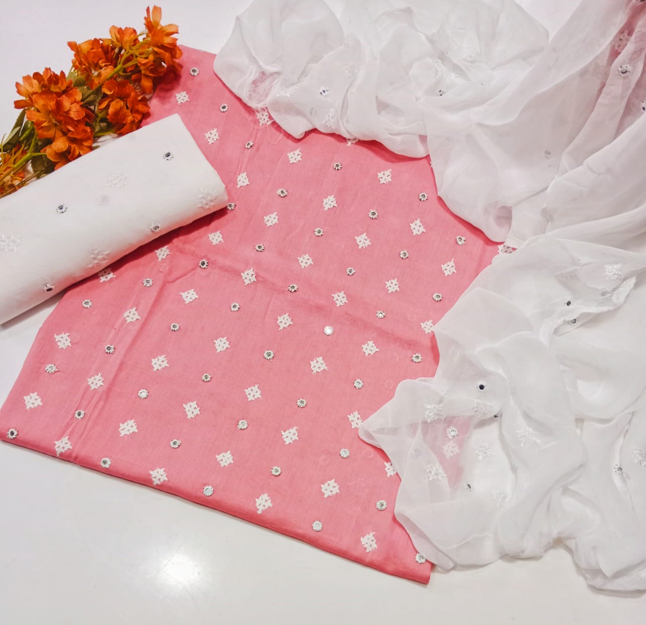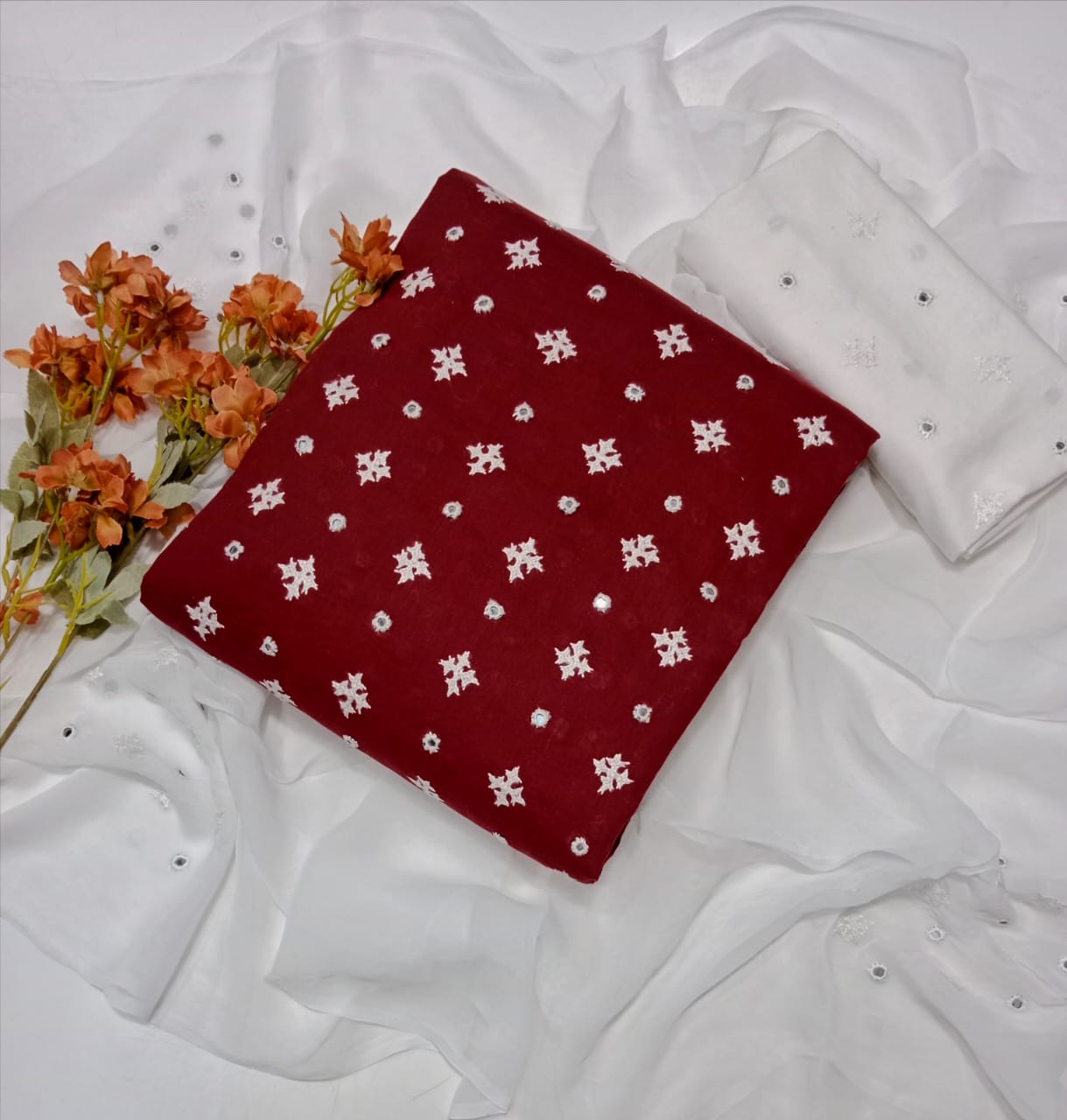 Trouser Cotton Embroidery Dupatta chiffon Embroidery